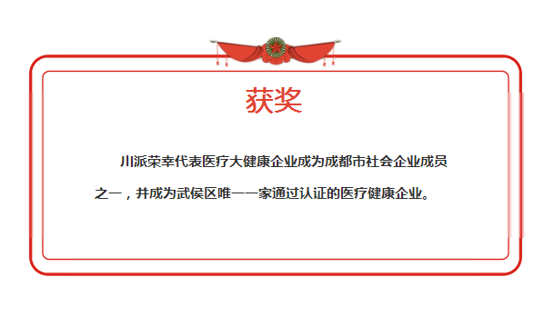 川派荣幸代表医疗大健康企业成为成都市社会企业成员之一,并成为武侯区唯一一家通过认证的医疗健康企业。
